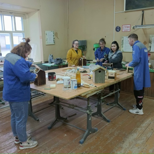 Молодые люди мастерят скворечники! Весна как ни как! ?